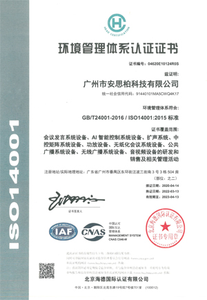 环境管理体系认证证书
